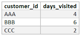 Customer AAA visited 4 days, BBB 6days and CCC for 2 days visited respectively.
